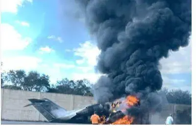 美国一架飞机在高速上坠毁并起火致2人死亡 现警方已前往调查。