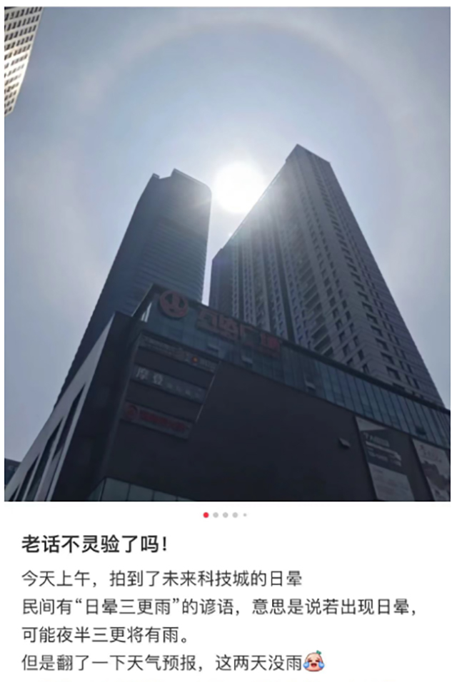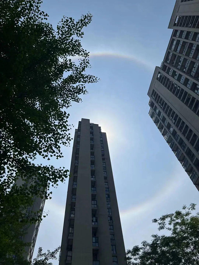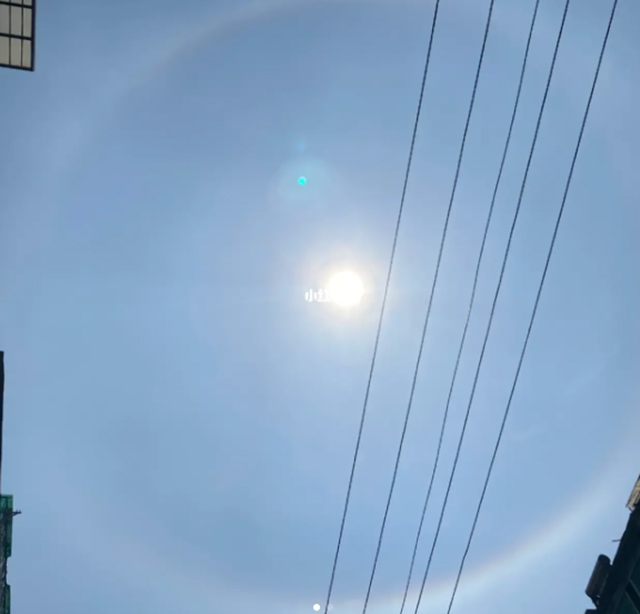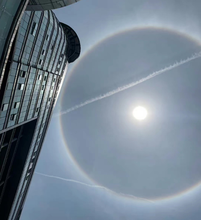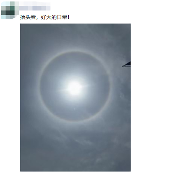 刚刚杭州上空惊现日晕 网友忍不住发问日晕到底是怎么形成的?看着这围绕着太阳出现的巨大光环,让人不禁想唱起:“爱的魔力是转圈圈……”
