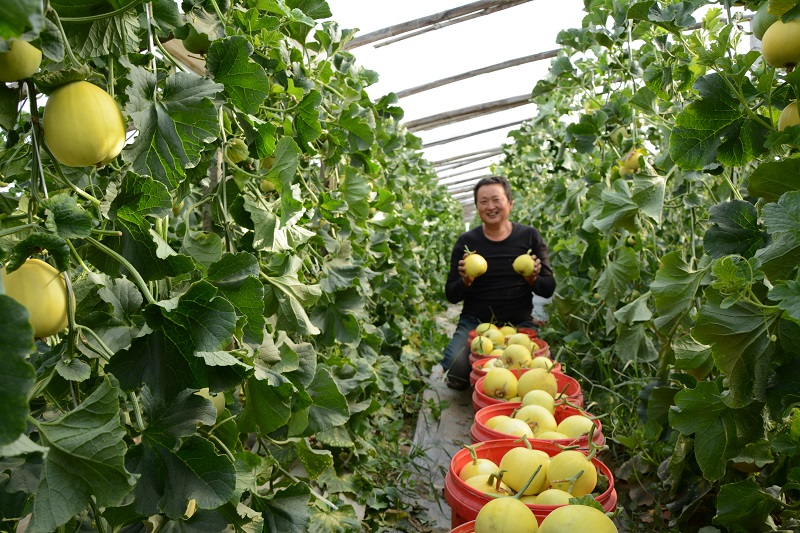 2024年5月16日,河南省内黄县马上乡东马上村种植技术员赵合州正在村甜瓜种植基地大棚采摘、直播、装车销售冰糖脆甜瓜。近年来,马上乡党委以党建为引领,大力推广温室大棚瓜菜种植,把高效农业作为经济发展主导产业来抓,以产业兴带动农民富。目前,全乡大棚甜瓜种植面积4万亩。瓜果种植专业合作社达48家,年产各类瓜菜24万吨,年创效益5亿元,助力乡村振兴。